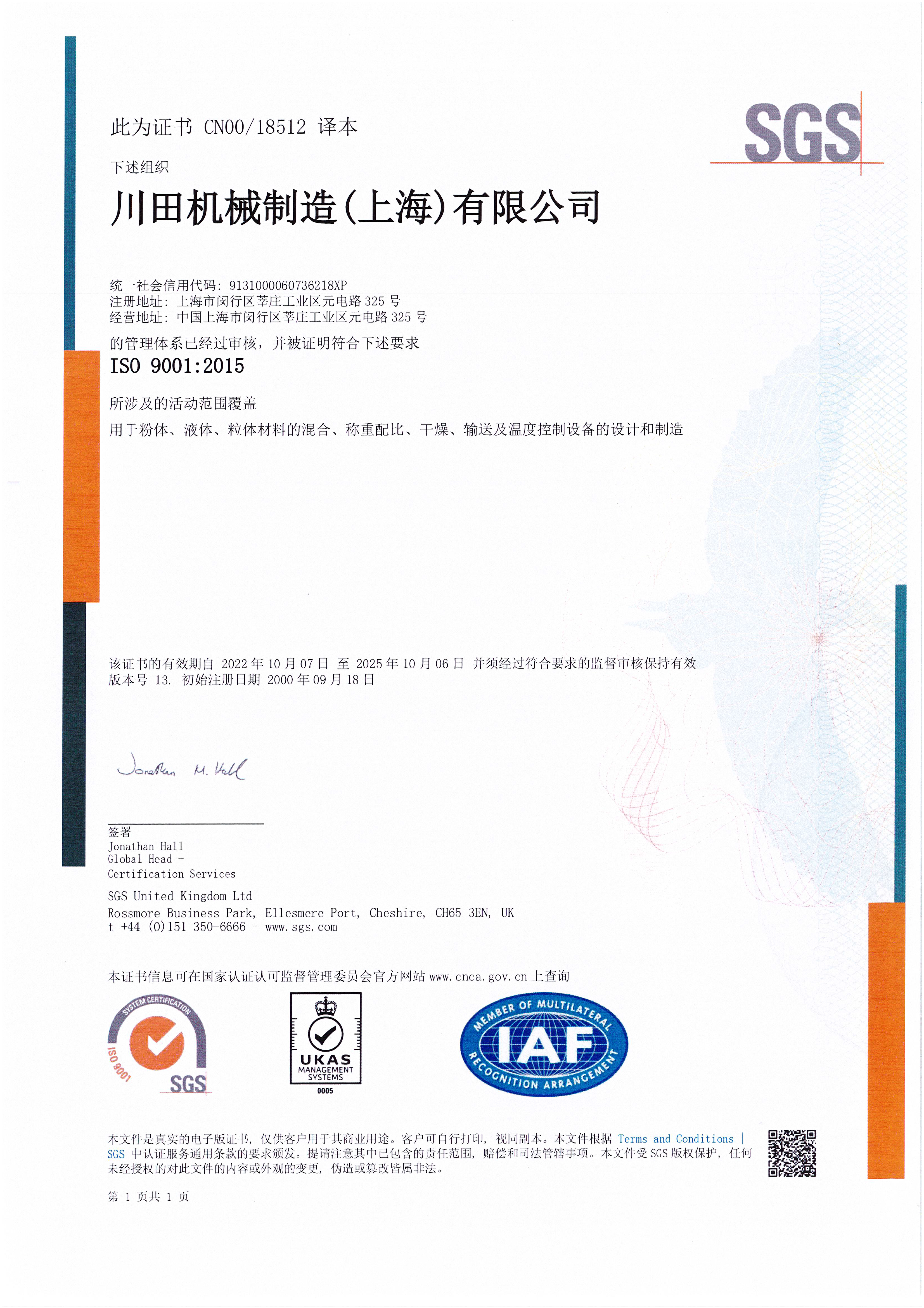 ISO9001證書(shū) 中文版(20250926~20281006)