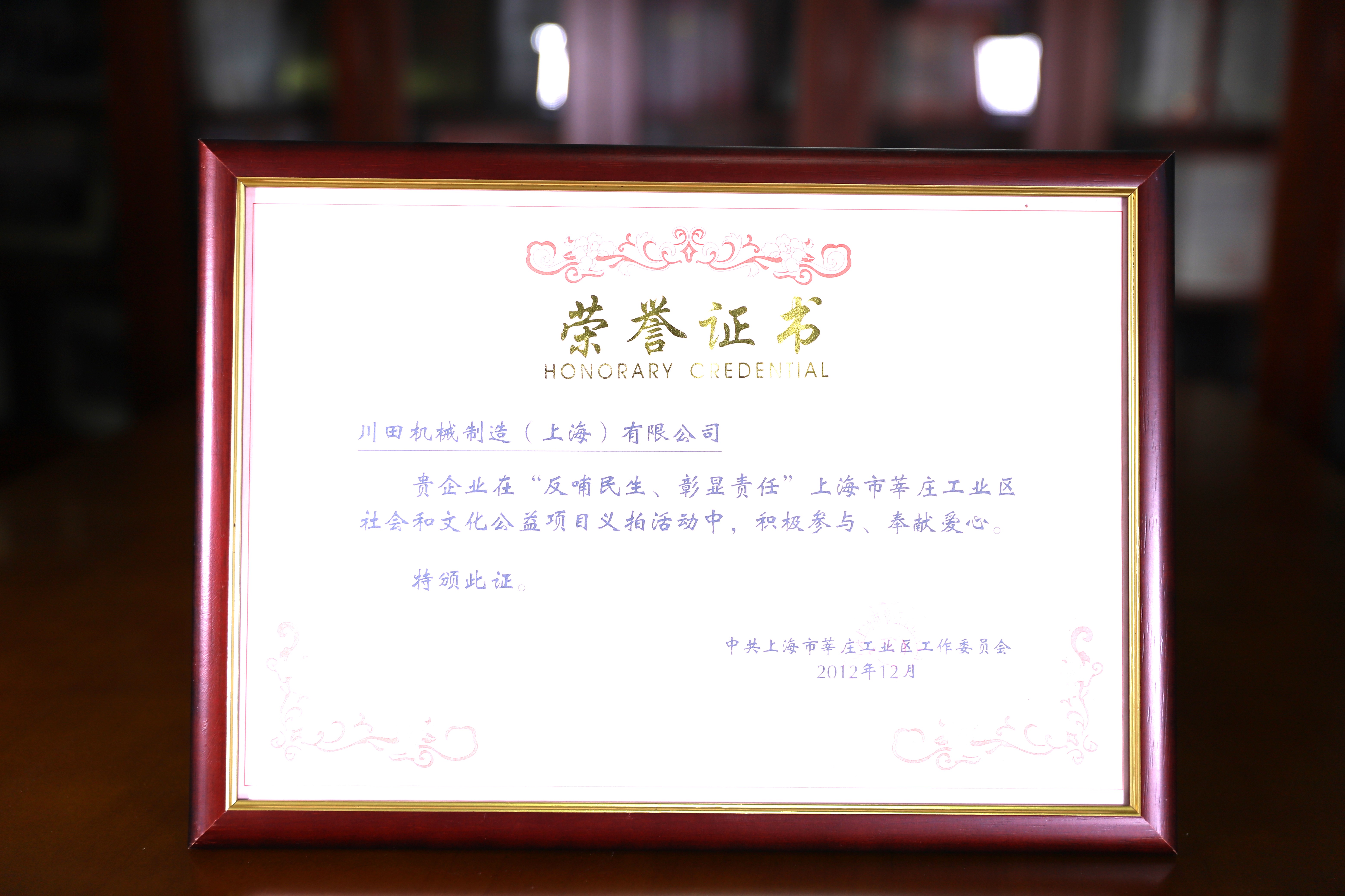 2012年度莘莊工業(yè)區(qū)社會文明公益事業(yè)貢獻(xiàn)賞