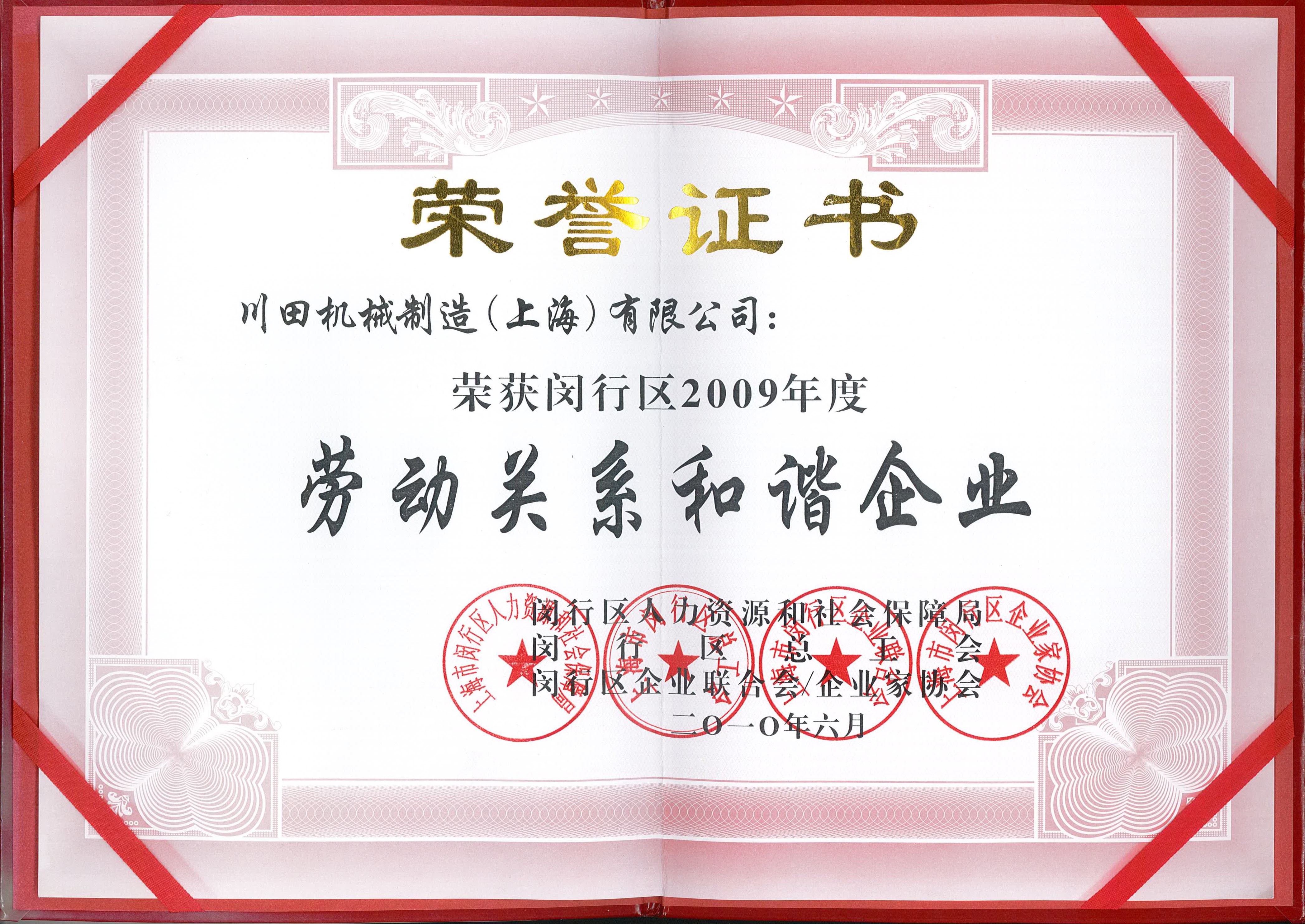 2009年度閔行區(qū)労務(wù)関係安定企業(yè)