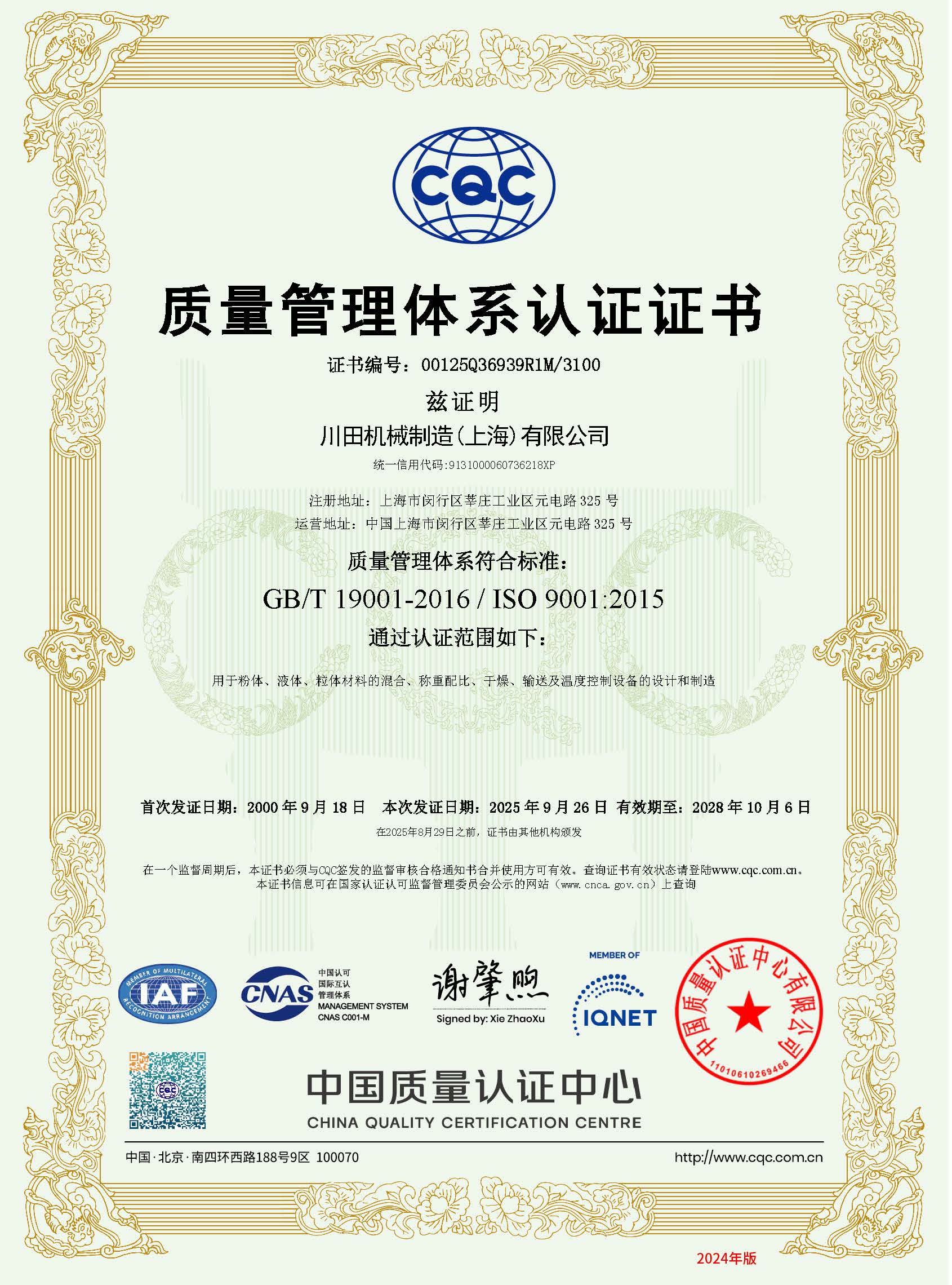 ISO9001證書(shū) 中文版(20250926~20281006)